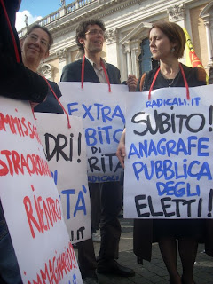 Pag. 43 – Sono tornate le oche in Campidoglio. Sono i pupazzi portati dai Radicali prima in piazza, poi nell’aula Giulio Cesare dove si stava svolgendo il consiglio comunale per protestare, come ha ricordato il segretario romano Riccardo Magi, per la mancata pubblicazione dei redditi e delle spese elettorali dei consiglieri comunali. Rita Bernardini ha anche “liberato” un palloncino a forma di oca nell’aula. Un’interrogazione urgente «per sapere quale sia lo stato relativo alla dichiarazione dei consiglieri su propri dati» è stata presentata da Aiuti (Pdl) insieme ad esponenti di Pd e gruppo misto.